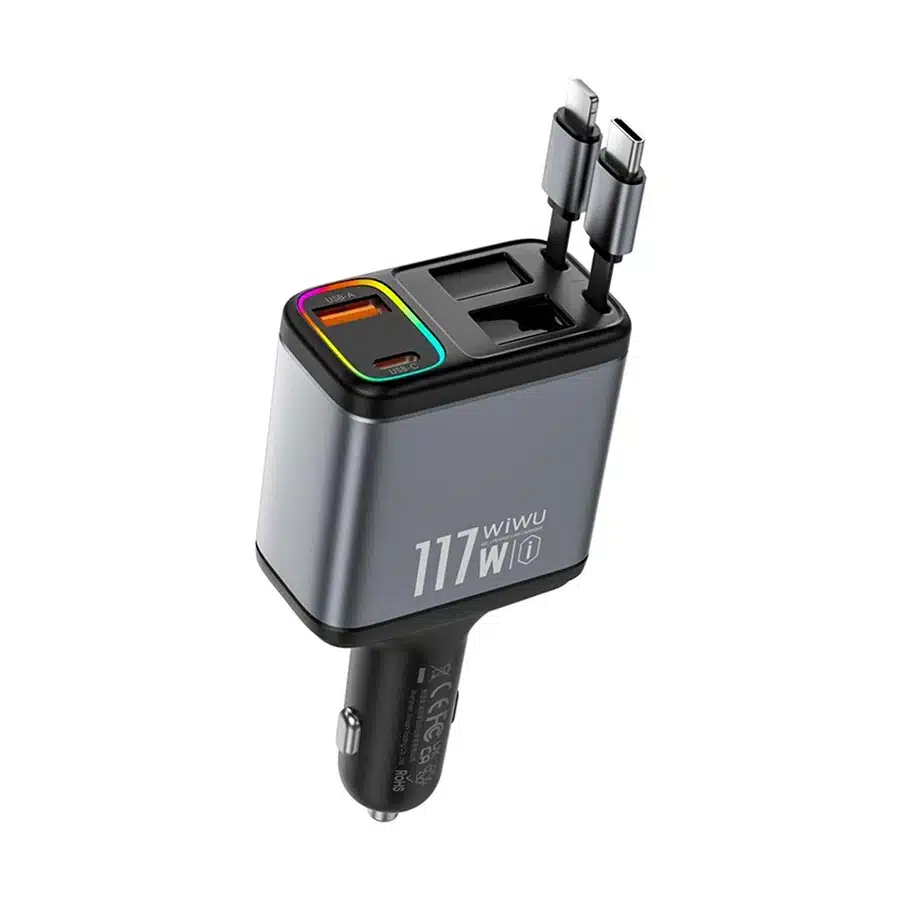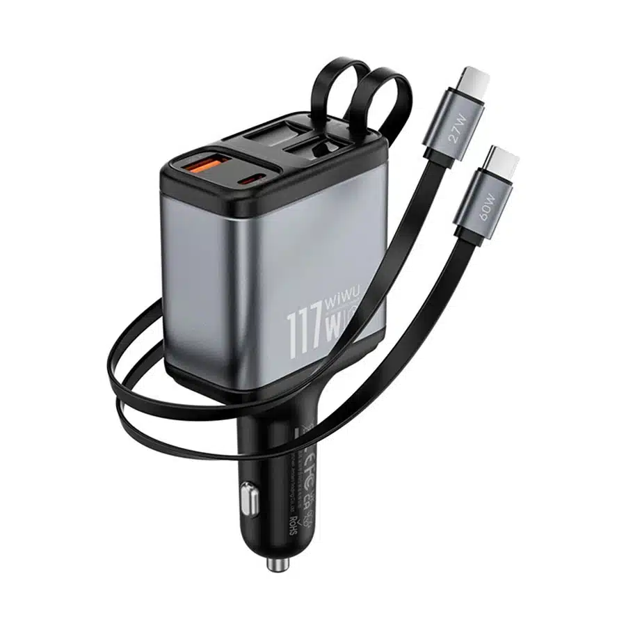 Wiwu Exeed 117W 4 Ports Tarnish-Gray Car Charger (2xUSB-C, 1xLightning & 1xUSB-A)